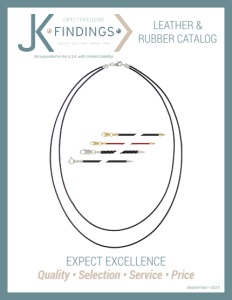 WWW.JKFINDINGS.COM JK FINDINGS BLOG FACEBOOK INSTAGRAM YOUTUBE LINKEDIN JK Findings USA Headquarters 1500 Brighton-Henrietta TL Road Rochester, NY 14623 TEL 585.292.0770 TOLL FREE 800.338.6157 FAX 585.292.0774 TOLL FREE 800.785.1734 JK Findings Hong Kong Office JK Findings, Room A2, 5th Floor Summit Building No. 30 Man Yue Street Hung Hom, Kowloon HK TEL 852.2723.9148 FAX 852.2422.5231 GENERAL INFORMATION CONTACT INFORMATION CONNECT WITH JK FINDINGS No portion of this document may be reproduced without the expressed written permission of JK Findings. Terms Domestic Accounts: Net 30 days for approved accounts, COD or In Advance for all other accounts. No shipments made to accounts past due International Accounts: Deposit required with order, full payment required prior to shipment Pricing • Prices are subject to change without notice • Prices are calculated using a base price and increment and at the markets on the date of shipment • Gold fixing – PM London Fix + 3.5% surcharge • Silver fixing – London Fix + 6.5% surcharge Orders Minimum Order – MOQ as listed per item and USD $250.00 per order. Returns • No claims allowed after 5 days from date of receipt. • No returns accepted without return authorization (RA) number, after 30 days from invoice date, on special orders or customer trademarked items. • To receive a return authorization (RA) number, send an email to info@jkfindings.com and include your invoice number and reason for return. • Full refunds are only offered due to manufacturing defects. All other returns due to customer order error / cancellation are subject to a 10% restocking fee. NSI – Non-Stock Item • NSI’s are special order only and will require a deposit at time of order; order cannot be cancelled once production has started • JK reserves the right to ship + / - 10% on all special ordered items • Trade marking is available on many items. Stamp fee is required at time of order Leather Our leather undergoes a hand-dying process. Color may vary slightly from shipment to shipment. Finishing AT = Anti-Tarnish Treatment, JK Findings has in-house Anti-Tarnish finishing SPAT = Fine Silver Plated & Anti-Tarnish Treatment GP = Flash Gold Plated RGP = Flash Rose Gold Plated RH = Rhodium Plated, available on most white gold items. Weights The gram weights listed in the catalog are averages and may fluctuate ± 5 Trademark The JK Findings mark consists of two dots that look like a colon “:” and is registered in the U.S. Patent and Trademark Office. Children’s Jewelry Statement Jewelry supplies in this catalog are for adult (13 years of age or older) use only and are not intended for use by children. Some of our products may contain small pieces which could be harmful to children if swallowed. Customers are solely responsible for adherence to state and federal laws on testing, disclosure and product labeling on goods for resale. Magnet Health Warning Contains small magnets. For adult use only (13 years of age and older). Keep away from children. All magnetic clasps are sold as a component intended to be permanently affixed to a finished jewelry chain or other strand. Swallowed or inhaled magnets can attract through and squeeze intestines or other body tissue, causing serious injury or death. Seek immediate medical attention if swallowed or inhaled. Magnetic fields can affect the function of pacemakers or other implanted electronic medical devices.